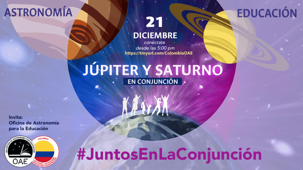 Para el próximo lunes 21 de diciembre, el equipo de coordinación de la OAE en Colombia está organizando una observación simultánea de la conjunción de Júpiter y Saturno, un acercamiento que no volverá a suceder hasta el año 2080.