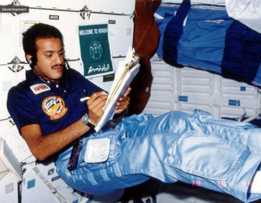 Sultan bin Salman Al Saud, nuestro joven protagonista nacido en Arabia Saudí, había encontrado su inspiración en la pantalla chica durante la transmisión del primer viaje tripulado a la Luna con la misión Apolo 11, que justamente había abandonado la Tierra el 16 de julio de 1969 desde la plataforma 39A. Más allá de cumplir su sueño de infancia, el viaje en el Discovery representaba la responsabilidad de ser el primer árabe, musulmán y miembro de una familia real en volar al espacio. El principe Sultan era nieto del rey Abdelaziz bin Saud de Arabia Saudi.