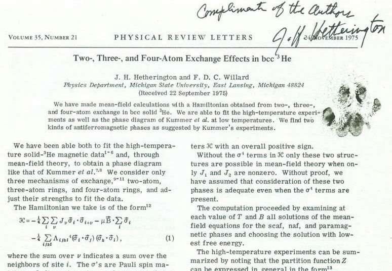 La curiosa historia comienza en la década de los 70, cuando el físico Jack H. Hetherington, profesor del departamento de física y astronomía de la Universidad Estatal de Michigan, estaba a punto de enviar a la reconocida revista Physical Review Letters, su trabajo en solitario sobre una nueva investigación en el campo de la física experimental de la materia condensada, Hetherington se enfrentó a un dilema cuyo detonante había sido utilizar la palabra “nosotros” en su manuscrito, al referirse de forma modesta a sus aportes individuales. La cuestión es que la revista admitía el uso del plural solo cuando el trabajo tenía dos o mas autores, lo que representaba para Hetherington la necesidad de volver a escribir a máquina la mayor parte del manuscrito, y corregir así la pequeña inexactitud.